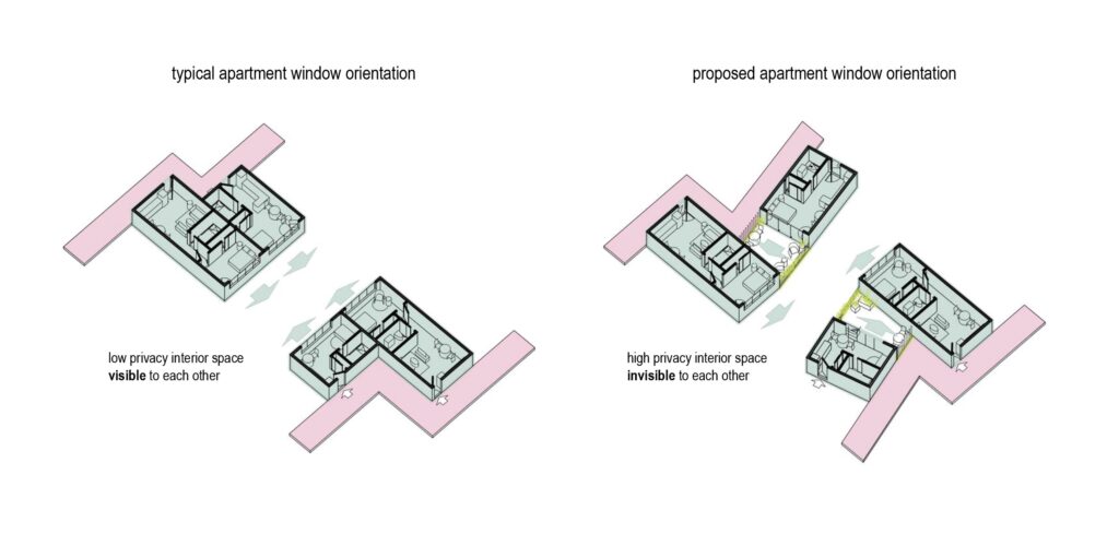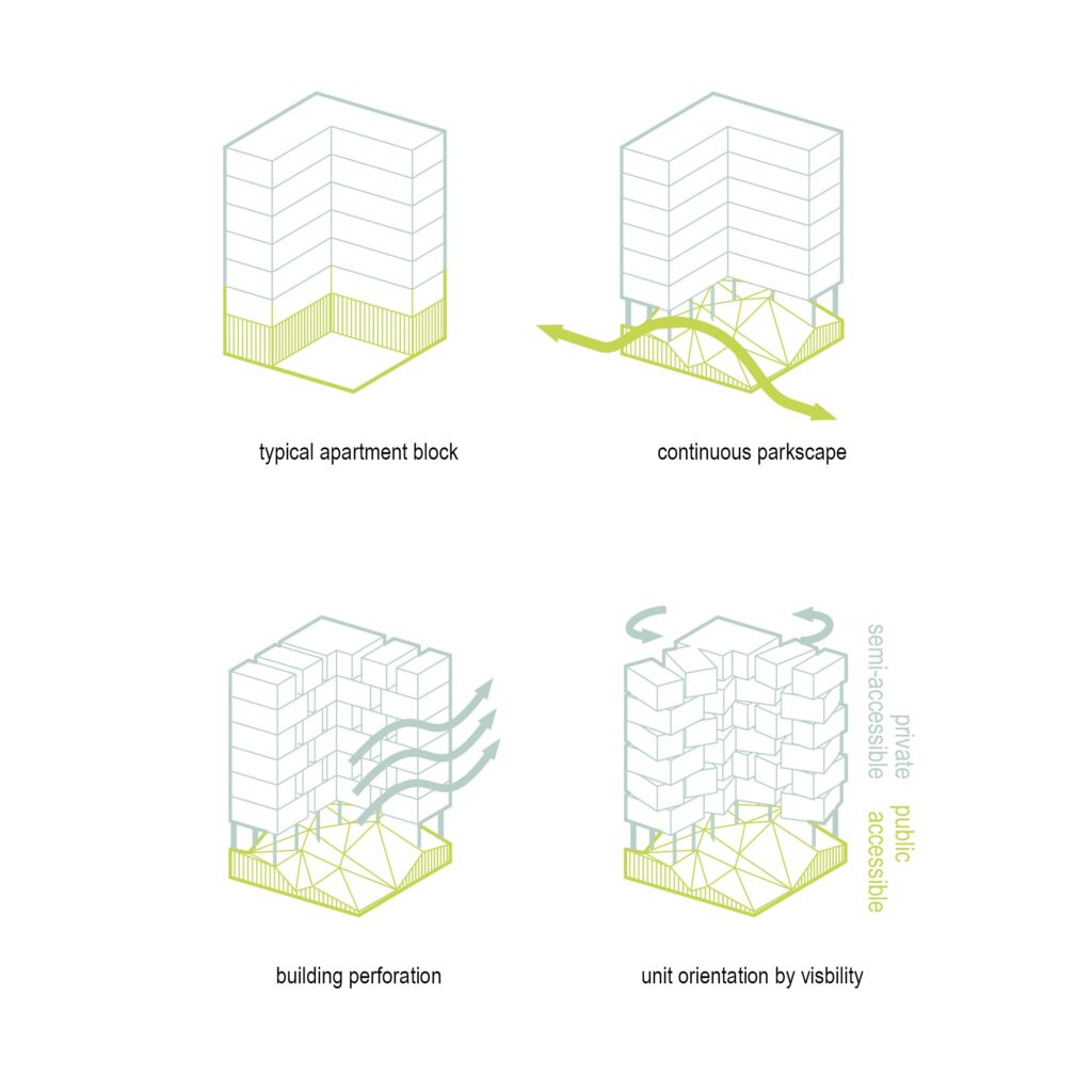 The Invisible Housing explores the idea of visibility in defining public and private spaces in a residential building complex. In this project, we used different levels of visual exposure to respond to urban contexts and internal relationships between spatial programs. This allows us to create spaces with relevant architectural qualities.