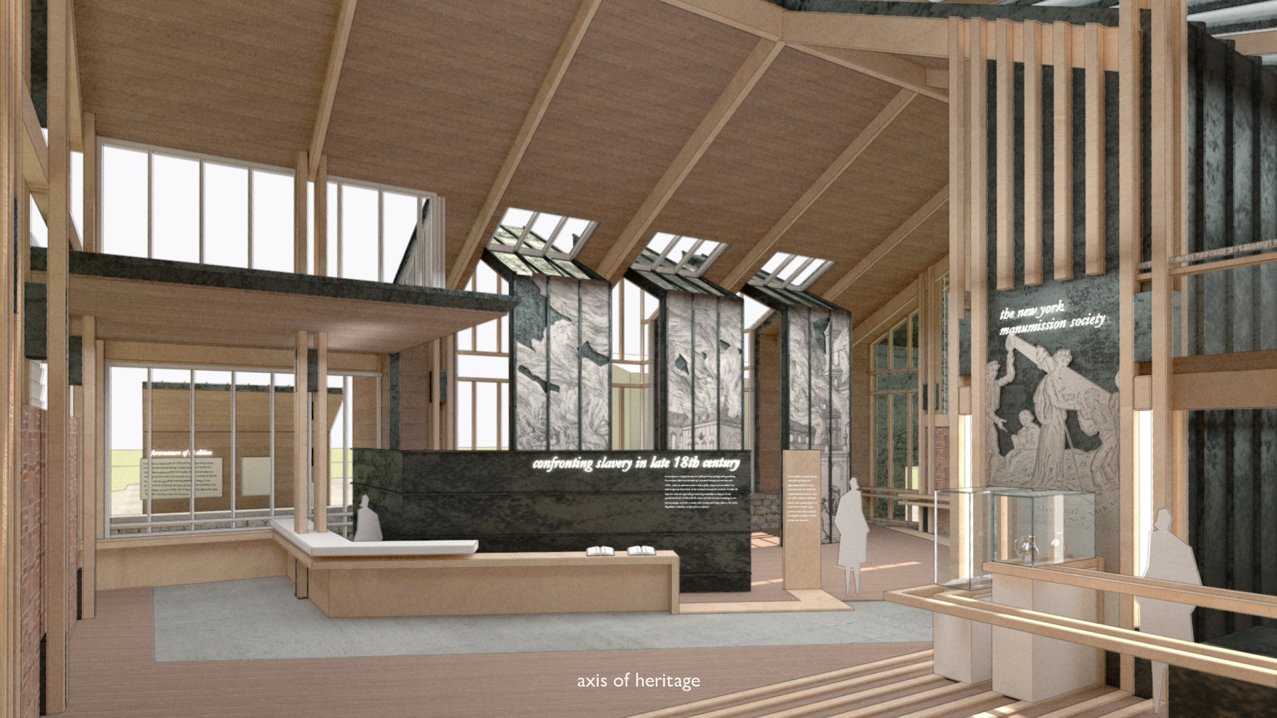 Located in the property of Jay Heritage Center (JHC) at Rye, NY, The proposed structure will be home to three exhibits that explore the legacy of John Jay, the New York Manumission Society, and New York African Free School in the early 19th century. The project aims to re-establish JHC’s historical narrative through the critical reconstruction of John Jay’s contradictory legacy to address pressing issues of social injustice in the present and future.